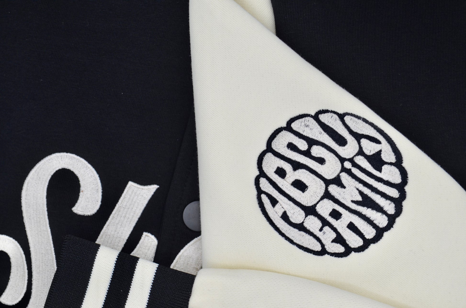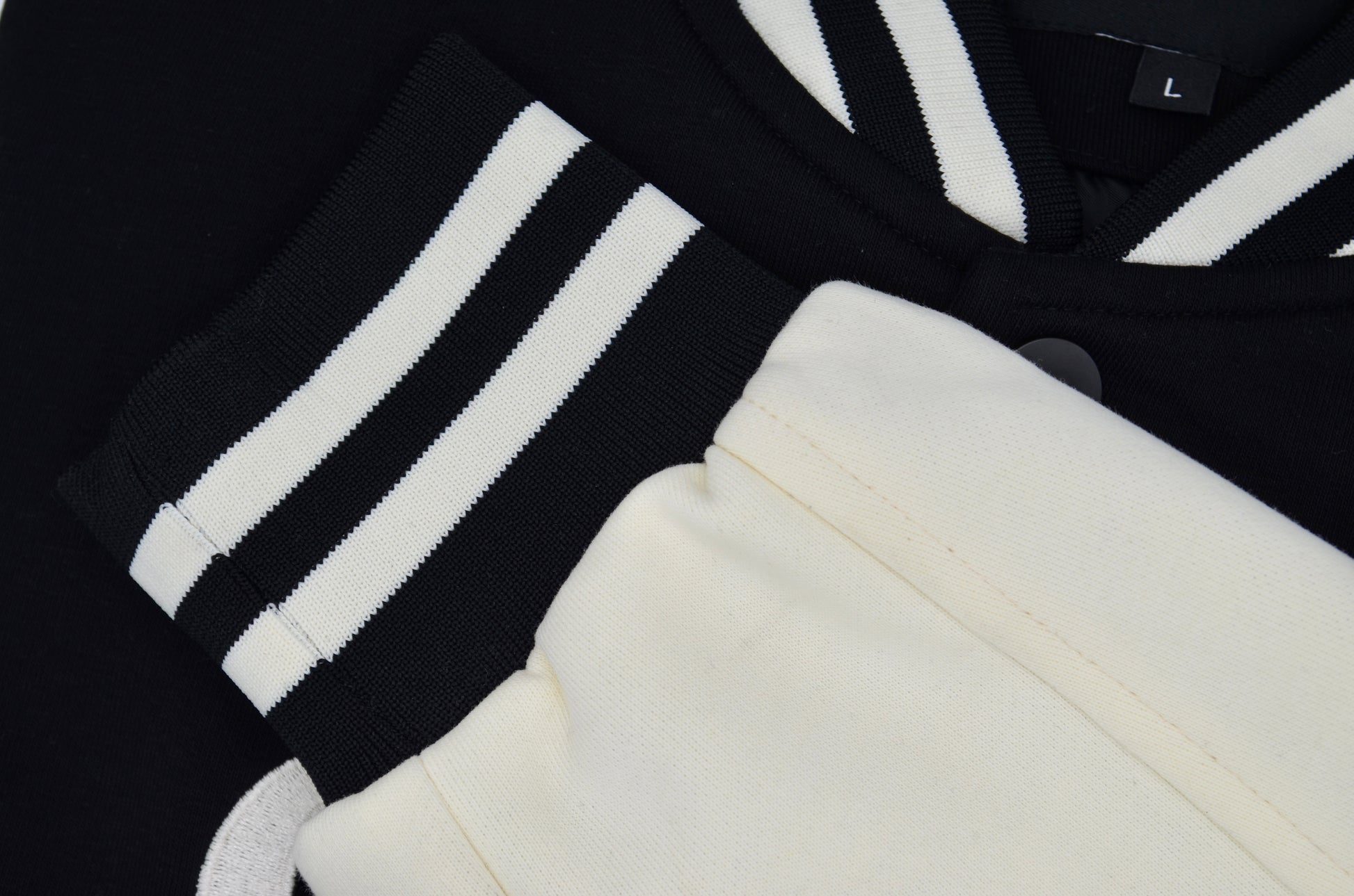 Vintage Black & Cream custom Knit Skegee Varsity Jacket. Our super soft custom fabric makes this varsity jacket one of the most comfortable varsity jackets in the marketplace without compromising on quality.